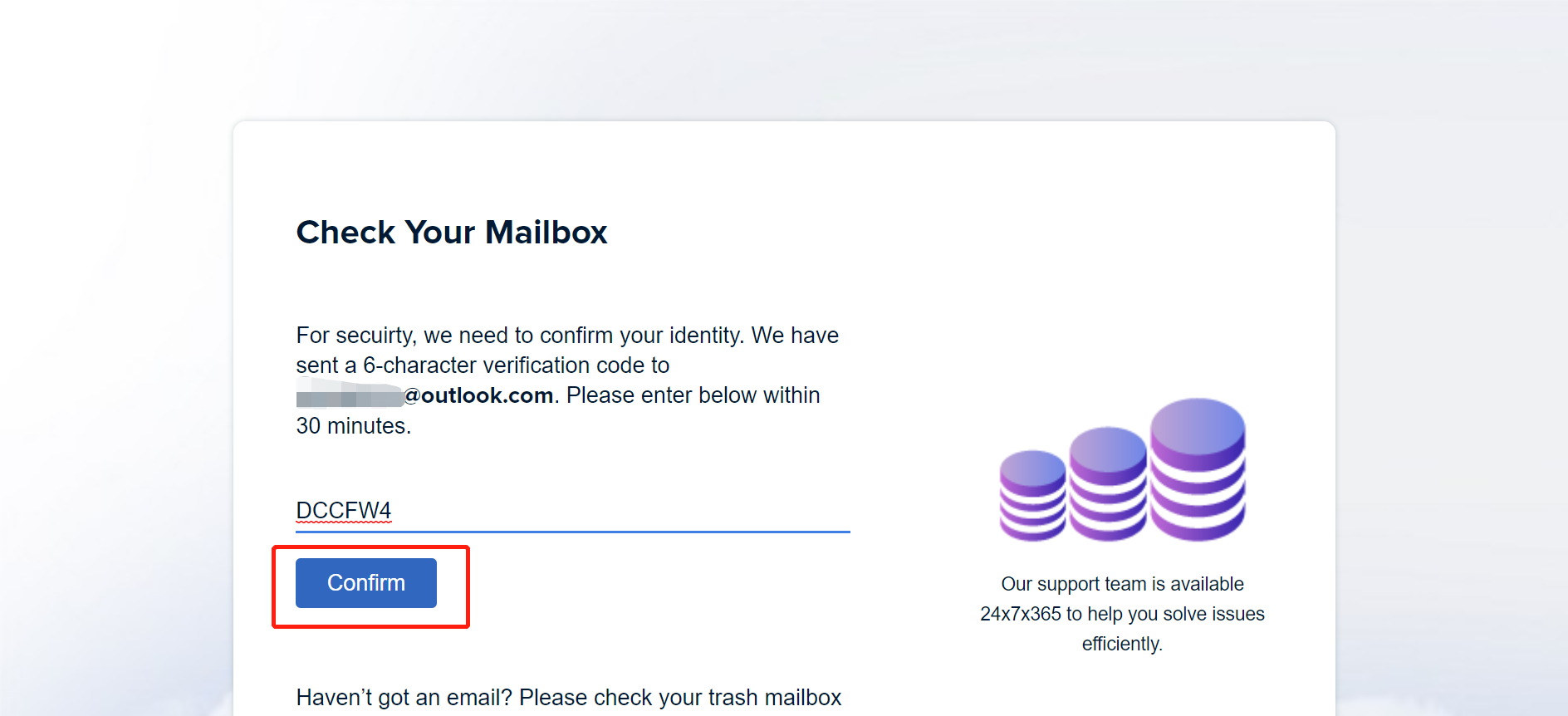 Please be advised that the code will only be valid for 30 minutes. Now log in to your email account to get the security code. If you don't find it in you inbox, please make sure to check your spam folder.