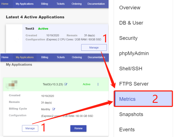 Log in to the Control Panel and locate your target deployment on the Home page or the My Applications page.