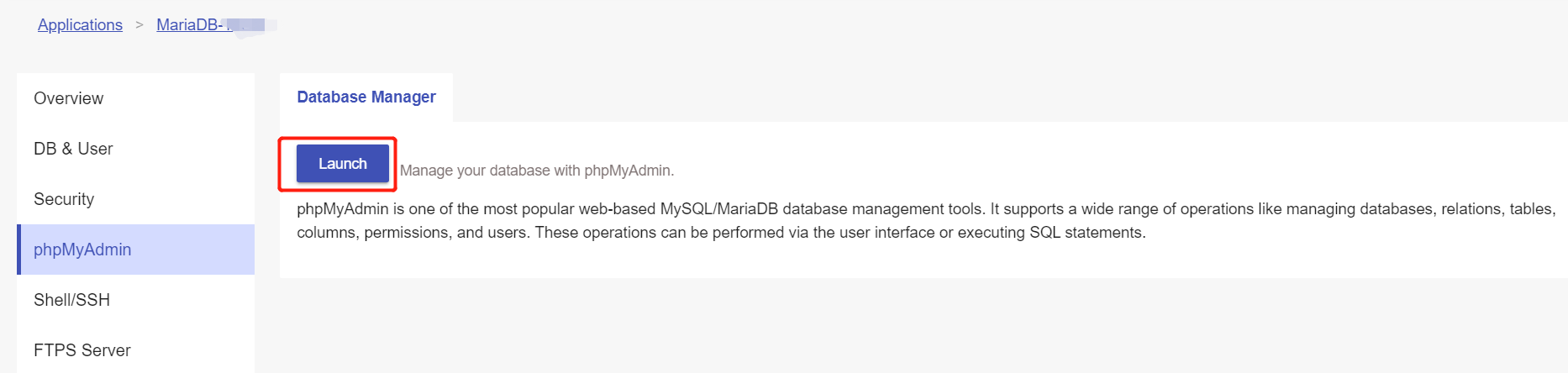 Please refer to the article “Connecting to MariaDB via Different Programming Languages” to check your database connection information in your codes.