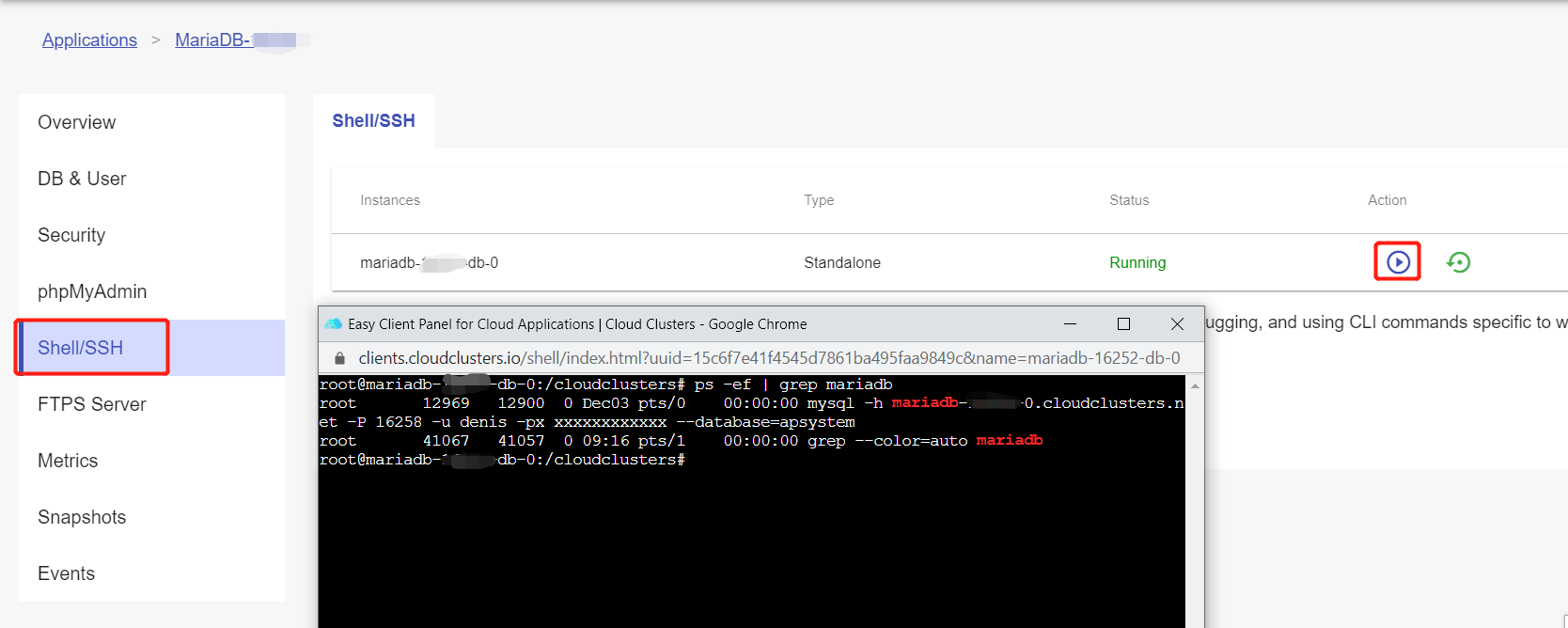 2)Running the command “ps –ef” via shell interface to check the MariaDB status. The service is working if the result is as the following screenshot shows.