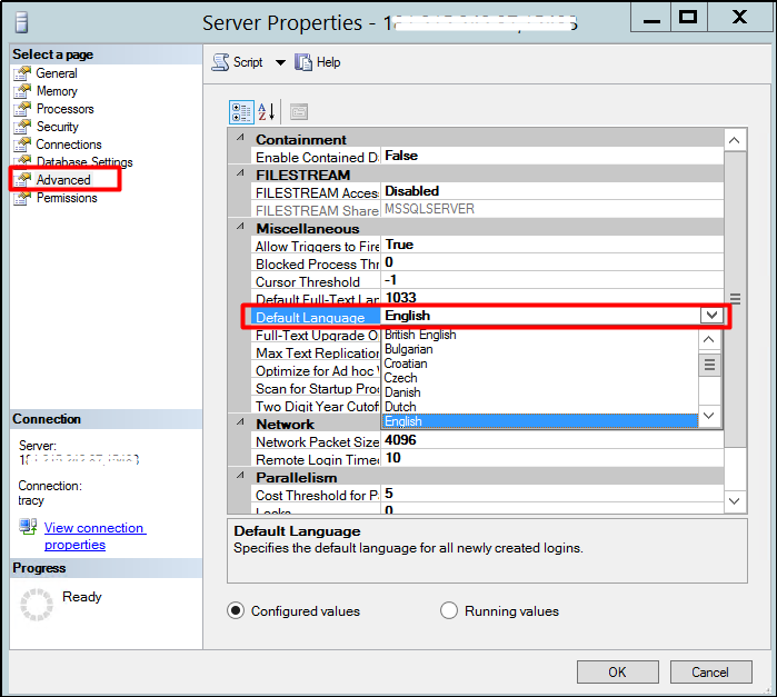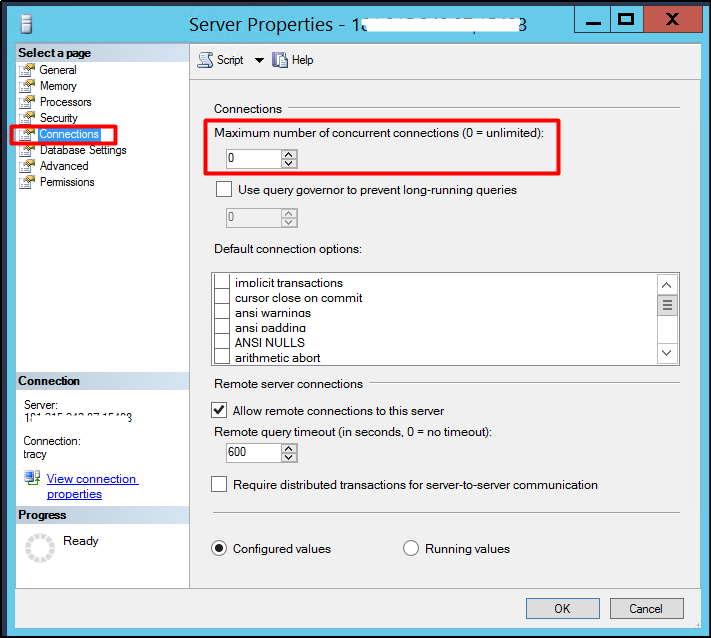 This article describes how you can change setting parameters for SQL Server via remote SSMS.