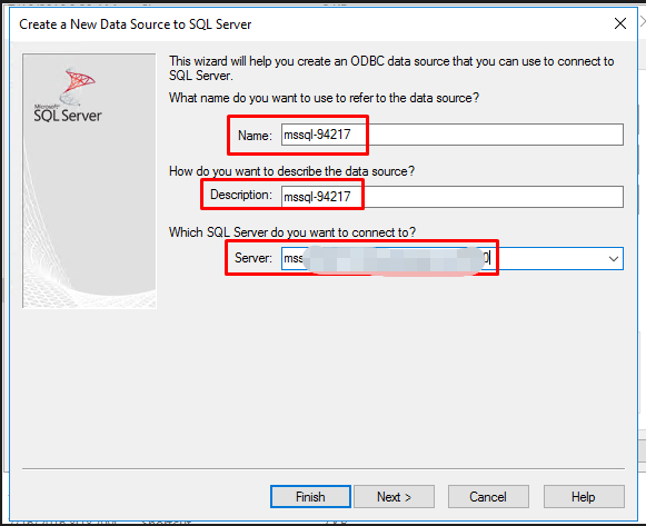 Name: specify a name for the data source. Description: any descriptive information that you desire. Server: the host name we provided in the client panel.