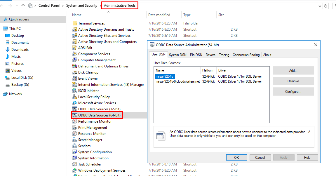 Step 1: Open ODBC Data Sources (64-bit) in Windows Server